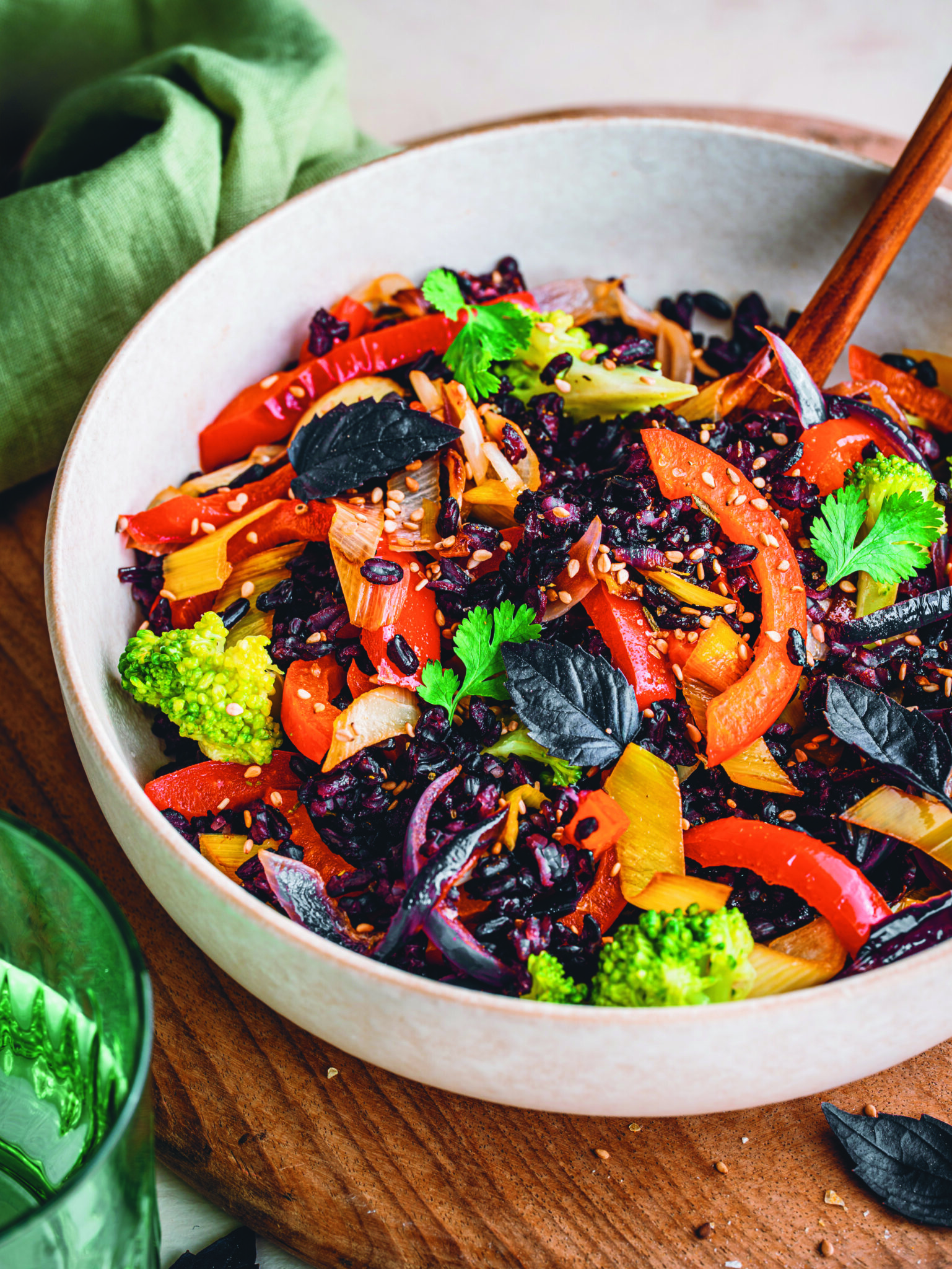 Découvrez cette délicieuse recette de riz noir aux légumes sautés.