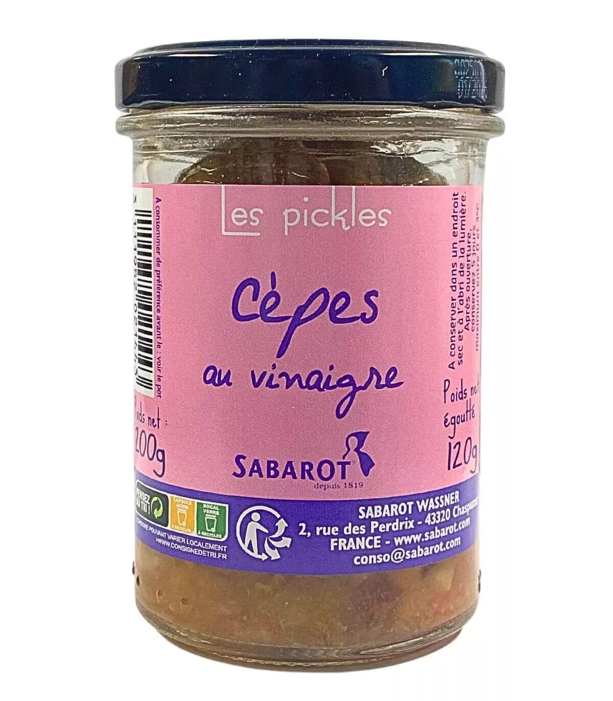 Découvrez la familles des champignons au vinaigre, et laissez-vous tenter par les cèpes au vinaigre et leurs petits légumes. Idéal à piquer en apéritif, pour donner une acidité à vos tartares de poisson ou en accompagnement de charcuterie, fromage... Taquinez vos papilles avec la gamme de pickles Sabarot. Ouvrez, piquez, dégustez !