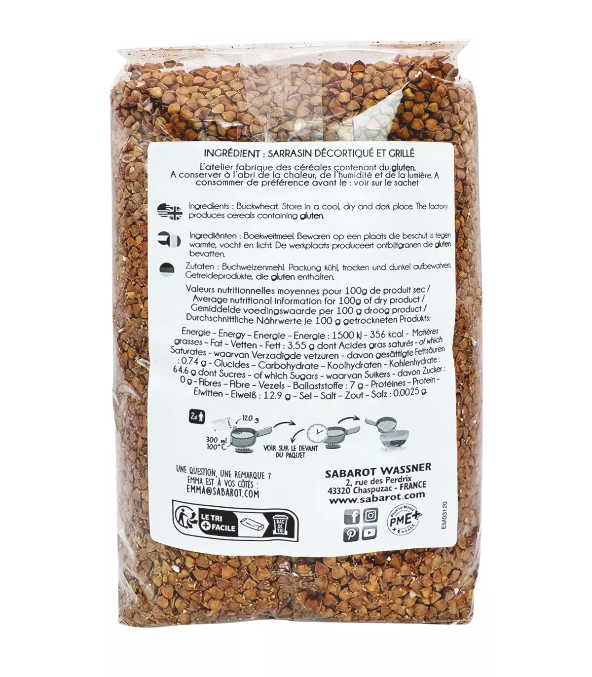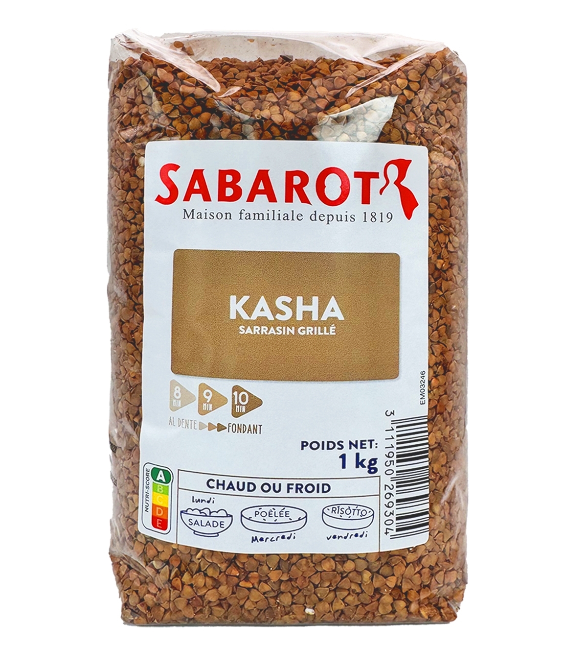 On appelle kasha le sarrasin décortiqué et grillé. Il est aujourd'hui principalement consommé en Europe de l'Est. Avec son petit goût de châtaigne, légèrement fumé, il apportera une touche originale et savoureuse à toutes vos préparations. Cuit en 10 minutes, vous pouvez le consommer en salade, en galette ou en accompagnement de vos plats de viandes, de légumes ou de poisson.