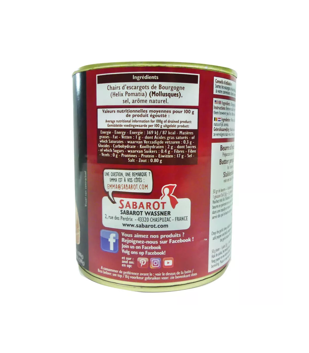 The Burgundy snail is generally considered the best of the snails by gourmets. This can contains no less than 96 very large pieces (without shell).