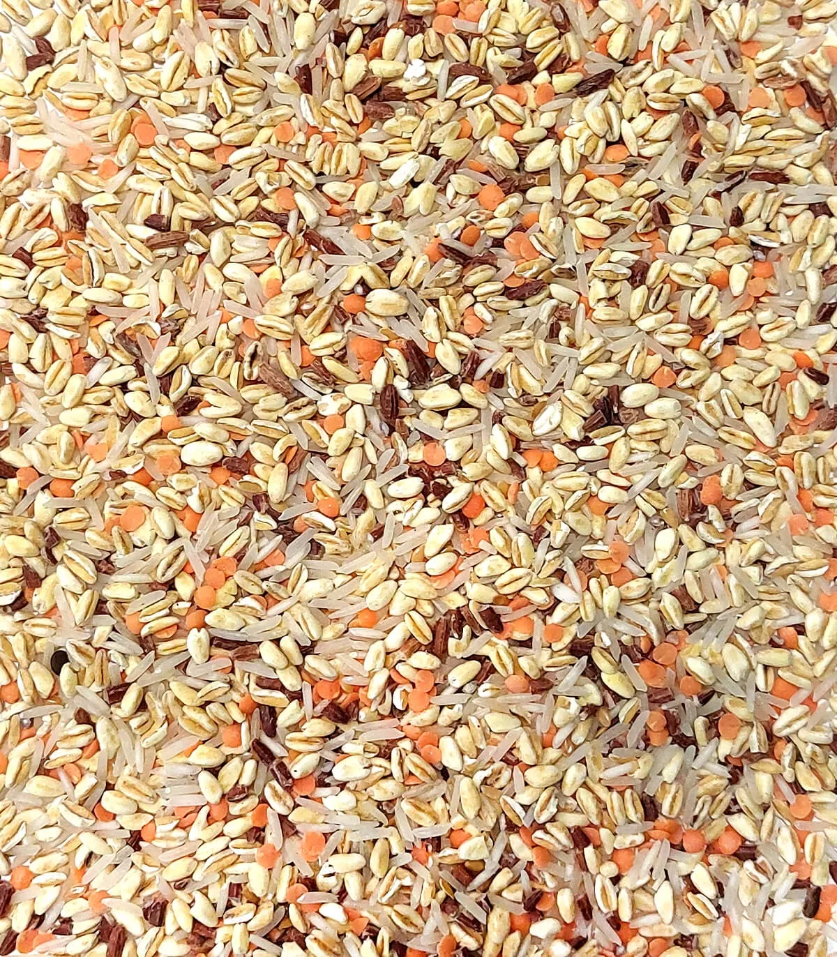 Pre-cooked durum wheat (50%), basmati rice (27%), coral lentils (10%), long red whole grain rice (10%), golden flax (3%).