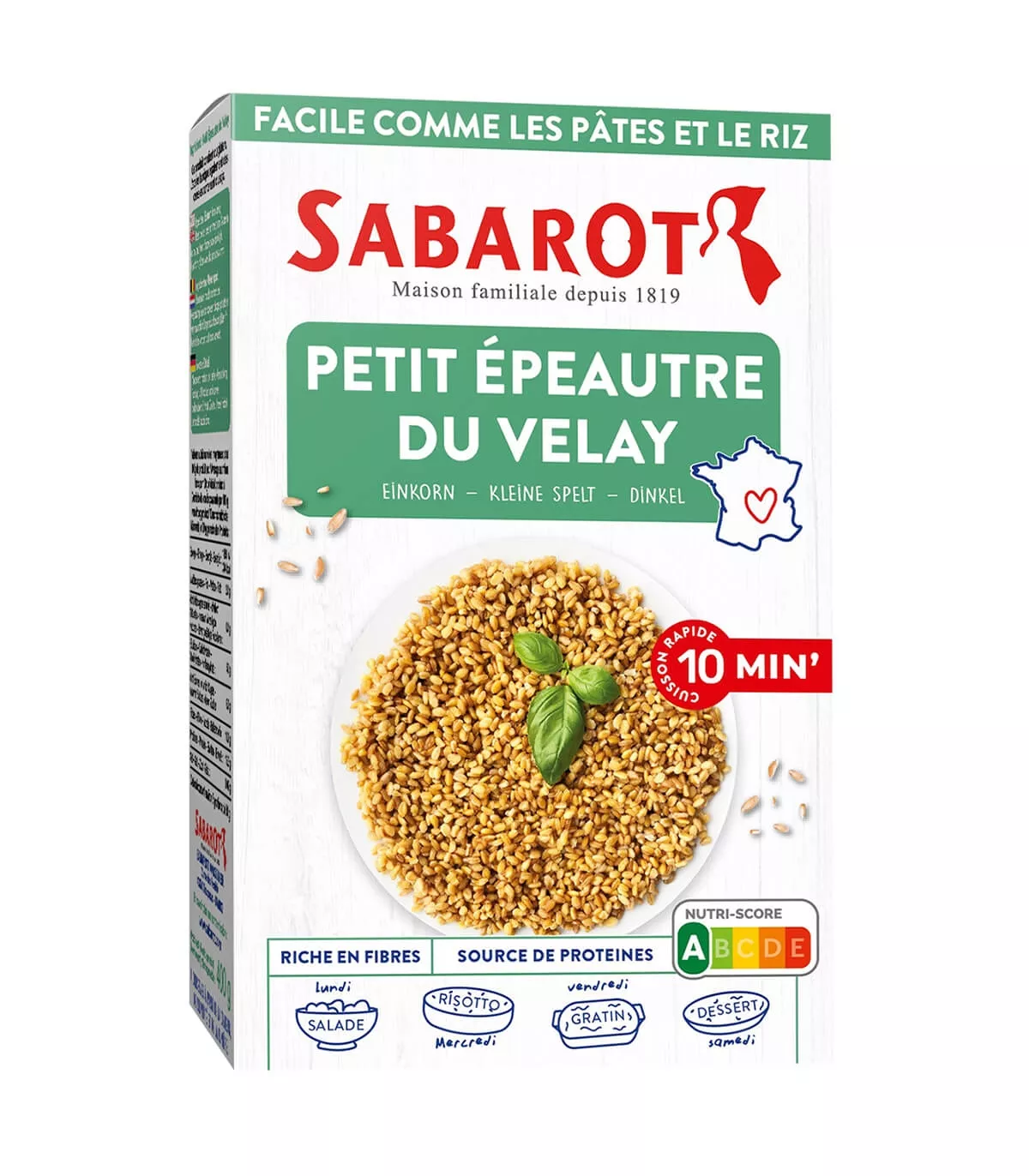 This ancient grain is cultivated in Auvergne at an altitude of over 800 meters, on the high plateaus of Velay. The Einkorn from Velay is a healthy alternative to pasta and rice. A product from a 100% local supply chain, created by Sabarot, the Einkorn from Velay is intended to be environmentally friendly and good for your health (contains all 8 essential amino acids for the body). The 10-minute cooking time, achieved by polishing the grain, allows you to easily and quickly enjoy a healthy product. With its nutty flavor and crunchiness, you can let your imagination run wild: appetizer, main course, or dessert… In salads, soups, as a side dish with fish or meat, our Einkorn from Velay invites you to be creative.