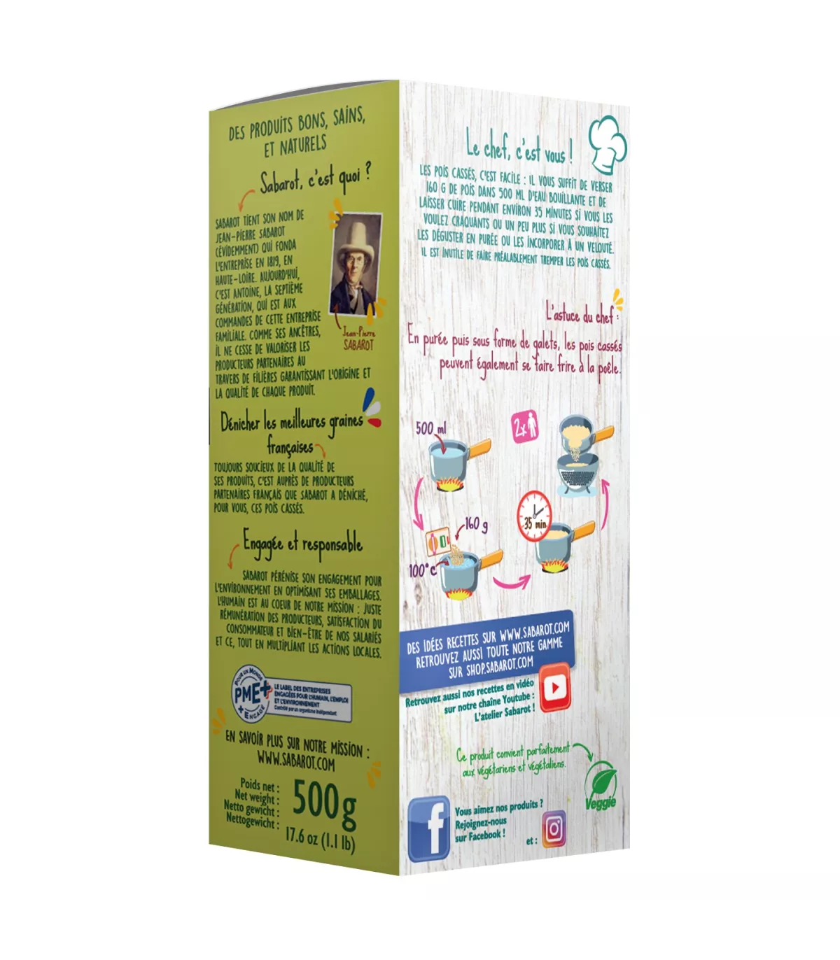 Cook the split peas over low heat in three times their volume of cold water for about 35 minutes from boiling. This package contains 6 servings of 80g.