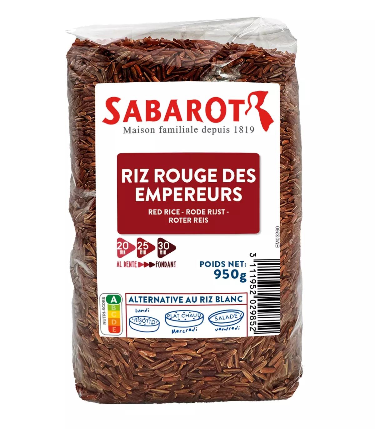 In its "Cereals du monde" range, Sabarot exclusively offers you the red rice of the Emperors. Originally reserved for the Chinese Emperor, this rice is whole grain. Its color and nutritional properties come from the skin surrounding it. With its subtle and delicate taste, it can be cooked in a salad, or as a side dish with meats, fish, or vegetables.