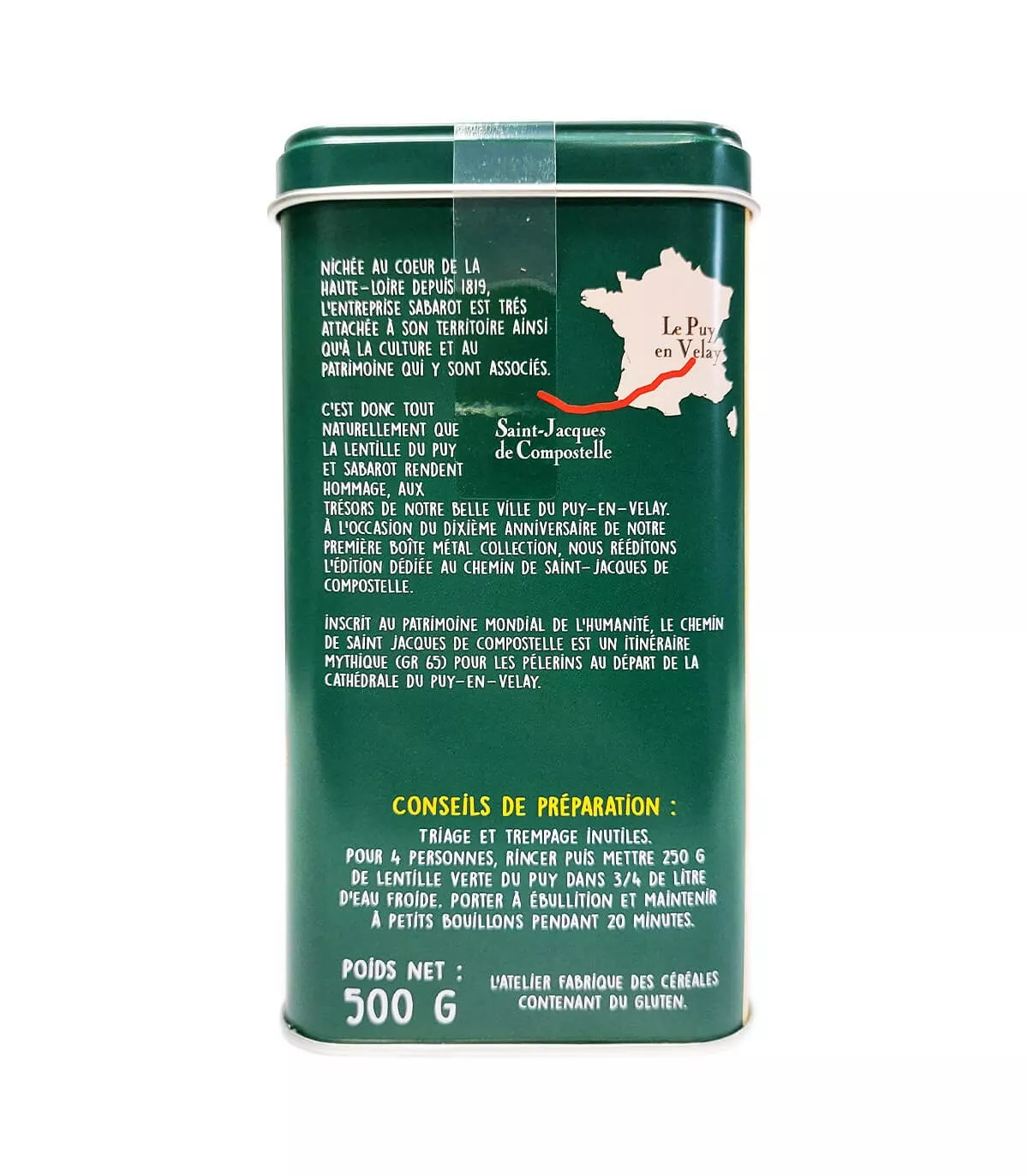 Following numerous requests, this year we decided to reissue the "Coquille St Jacques" box in reference to the St James Way starting in Le Puy en Velay. Attention collectors! Formerly AOC and now AOP, the Green Lentil from Puy comes from environmentally friendly agriculture. With an incomparable taste recognized worldwide by top chefs, this traditional product from Haute-Loire benefits from the microclimate of the famous volcanic lands of Velay.