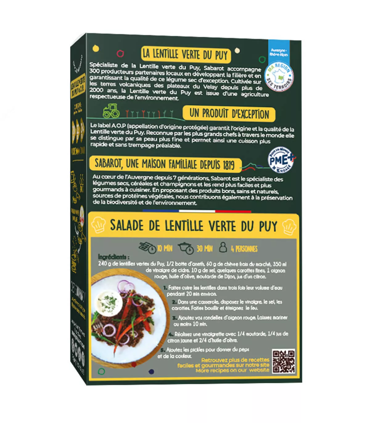 Formerly A.O.C and now A.O.P., the Le Puy green lentils comes from agriculture that respects nature. With an incomparable taste recognized worldwide by top chefs, this product from Haute-Loire benefits from the microclimate of the volcanic lands of Velay. Its taste and texture (firm when cooked) are achieved thanks to the terroir of Haute Loire. Feel free to cook it in salads, with a small salted dish, fish, or even as a dessert.