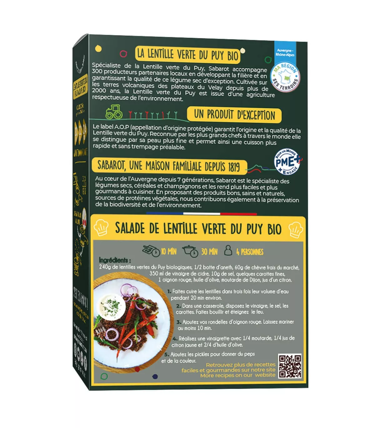 Formerly A.O.C and now A.O.P., the Organic Le Puy green lentils comes from agriculture that respects nature. With an incomparable taste recognized worldwide by top chefs, this product from Haute-Loire benefits from the microclimate of the volcanic lands of Velay. Its taste and texture (firm when cooked) are achieved thanks to the terroir of Haute Loire. Feel free to cook it in salads, with pork, fish, or even in desserts. These lentils meet the standards of Organic farming.