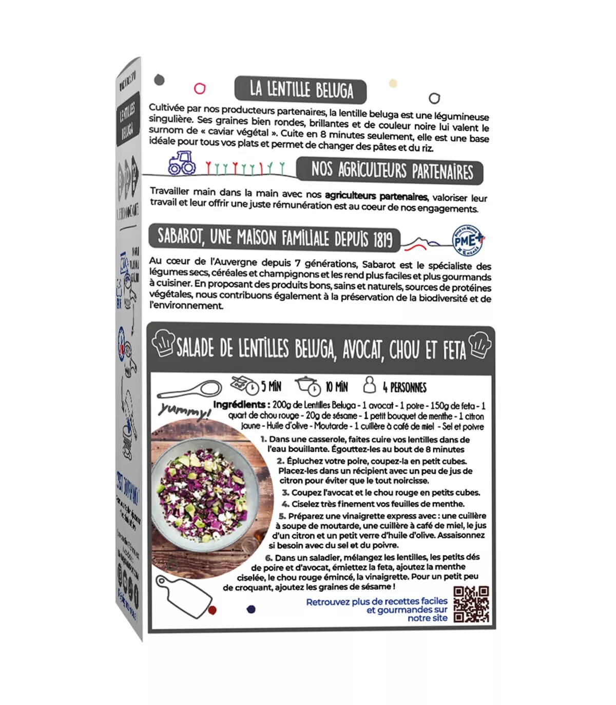 Easy to prepare, lentils Beluga lend themselves to all sorts of dishes: in soups, salads, or as a side vegetable. The history of the lentil dates back to the Neolithic era. It was much larger than today and was part of the diet of the Egyptians, Greeks, and Romans. Lentils are now mainly harvested in France and Canada for the majority of global production.