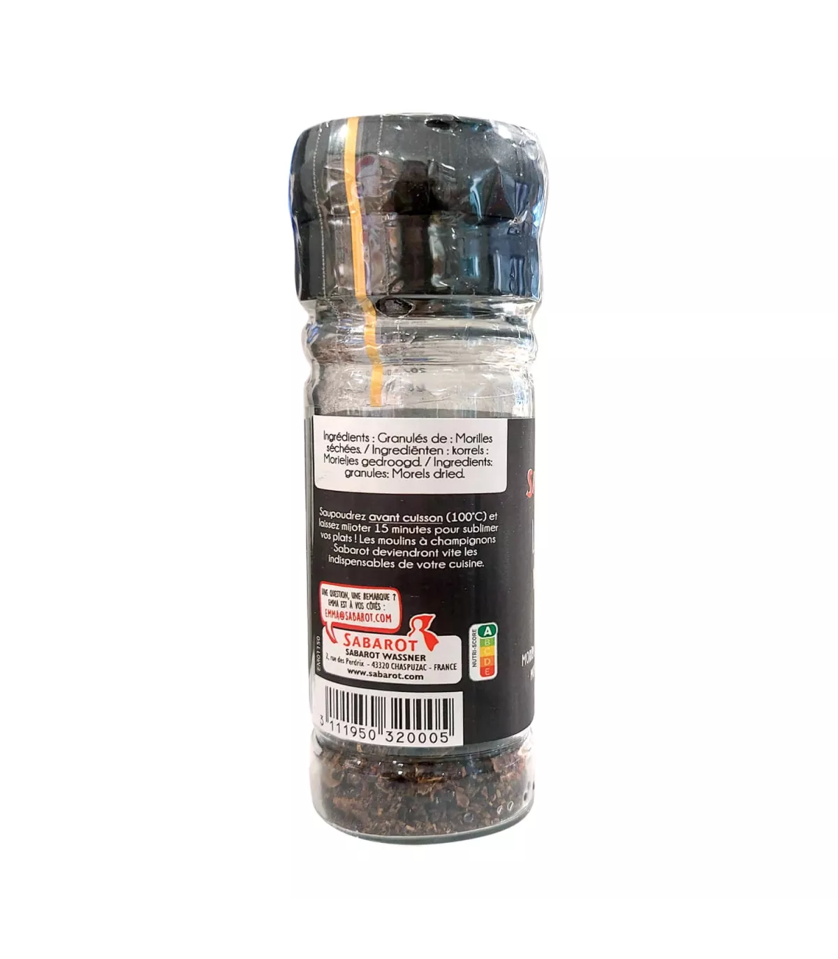 Enhance your dishes in just a few seconds with Sabarot mushroom grinders! With just 2 twists of the grinder, add a delicate morel flavor to your vegetable stir-fries, sauces, soups, gratins, and purees. For over 30 years, Sabarot has been creating supply chains worldwide to ensure the quality and origins of its mushrooms. All Sabarot mushrooms are rigorously selected before being packaged in France, in the Haute-Loire department, in the heart of Auvergne. The primary goal of Sabarot remains the high-end production of local products, in accordance with the company's tradition and the gastronomic reputation of the region.