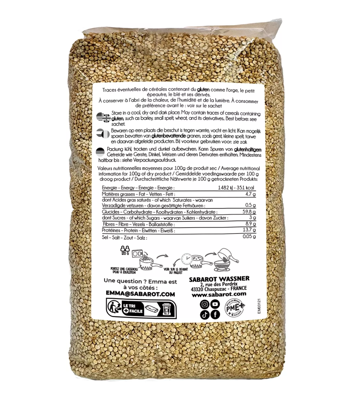 Cook the quinoa over low heat in three times its volume of water for about 10 minutes from boiling. This package contains 12 servings of 80g.