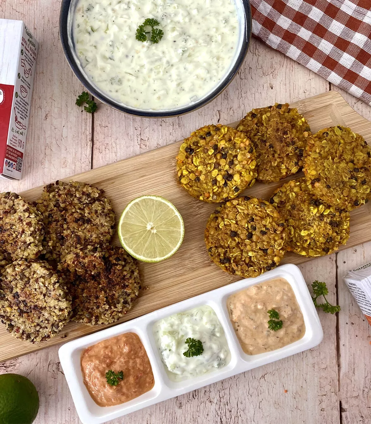 1 preparation for 3 uses: as a burger, appetizer, or falafels