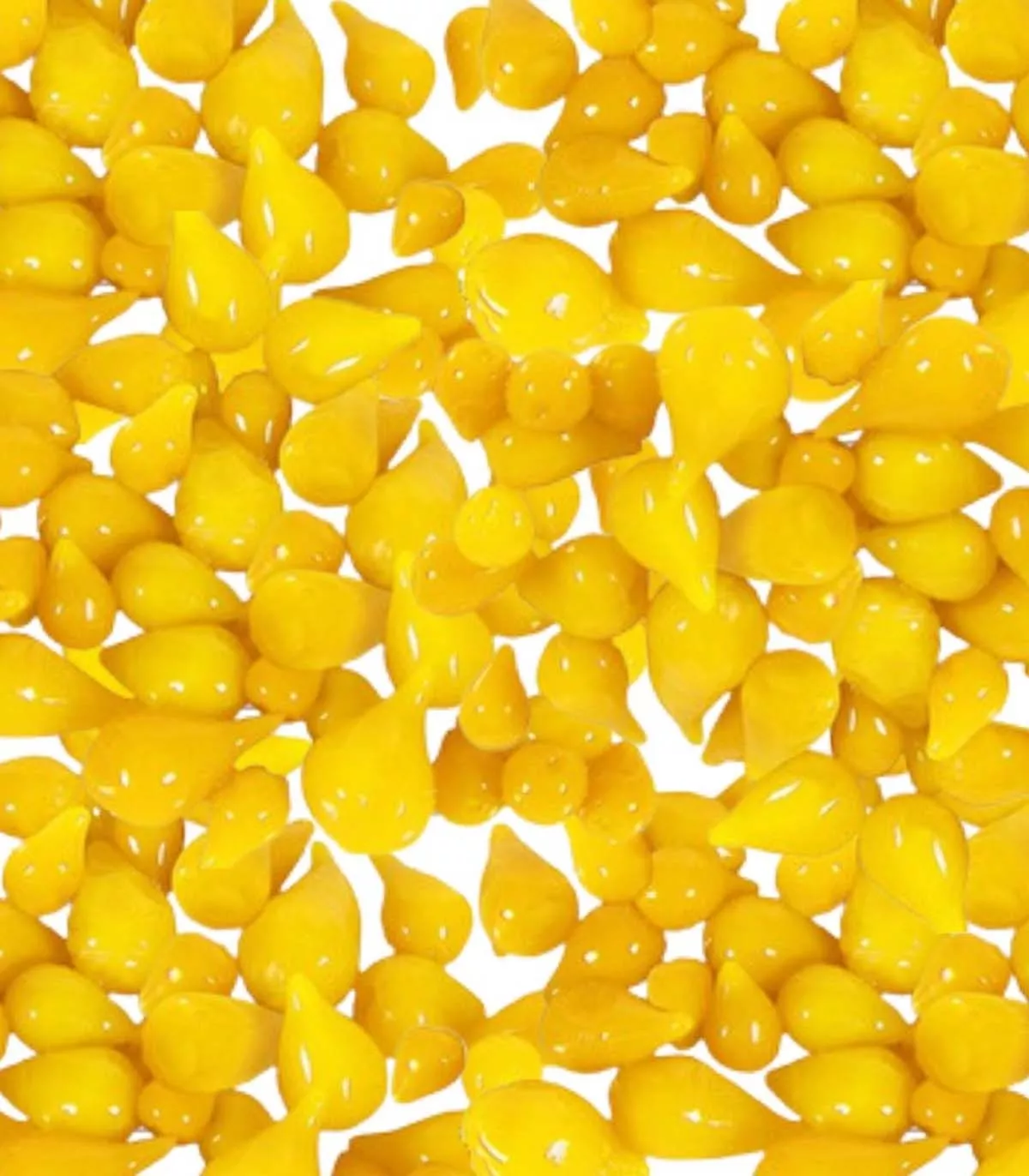 Gouttes de poivrons jaunes, eau, sucre, vinaigre, sel, antioxydant : acide ascorbique, affermissant : chlorure de calcium.