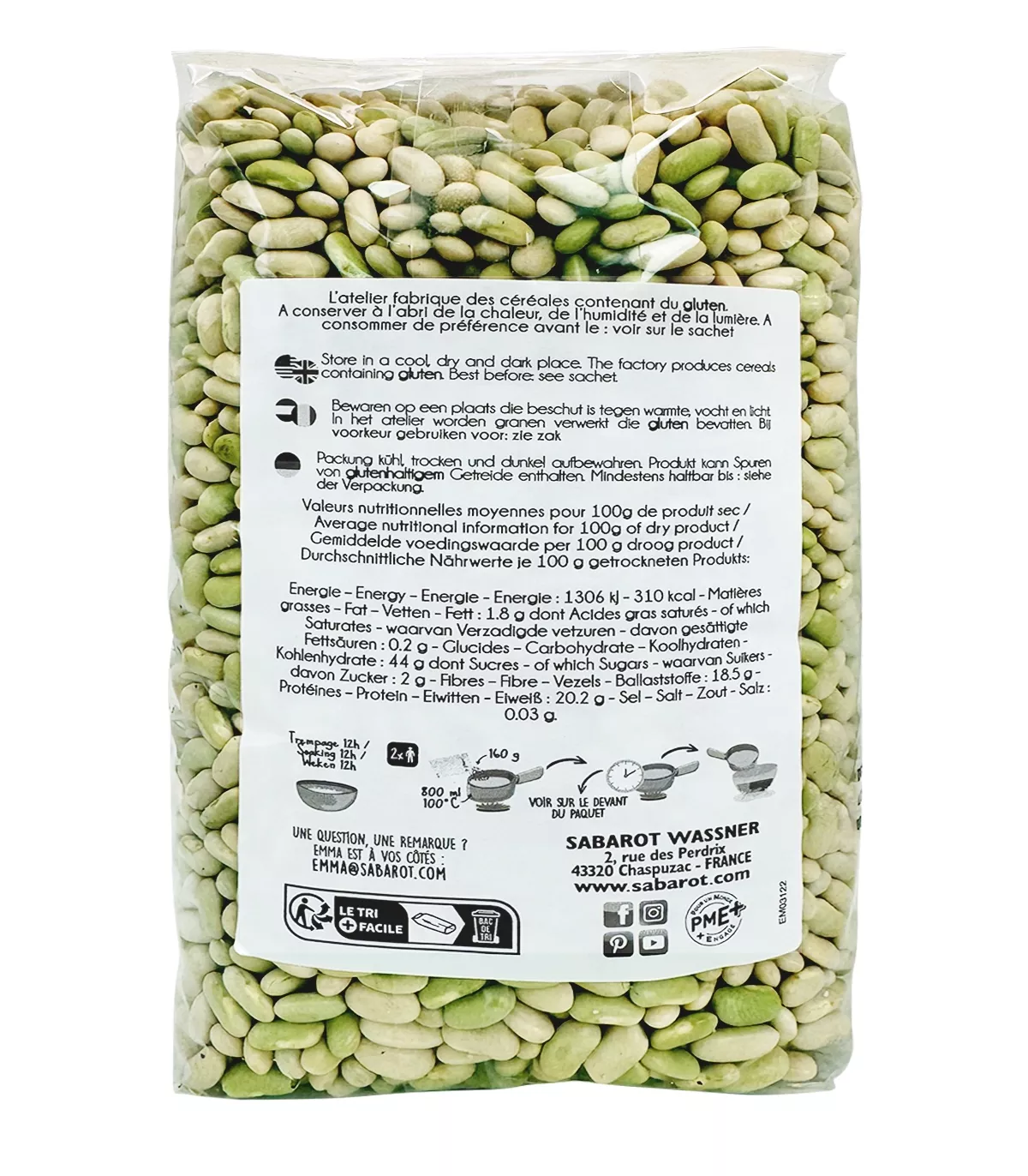 Trempage : une nuit. Faire cuire les flageolets verts à feu doux dans 3 fois leur volume d'eau pendant environ 90 minutes à partir de l'ébullition. Ce paquet contient environ 12 portions de 80g.