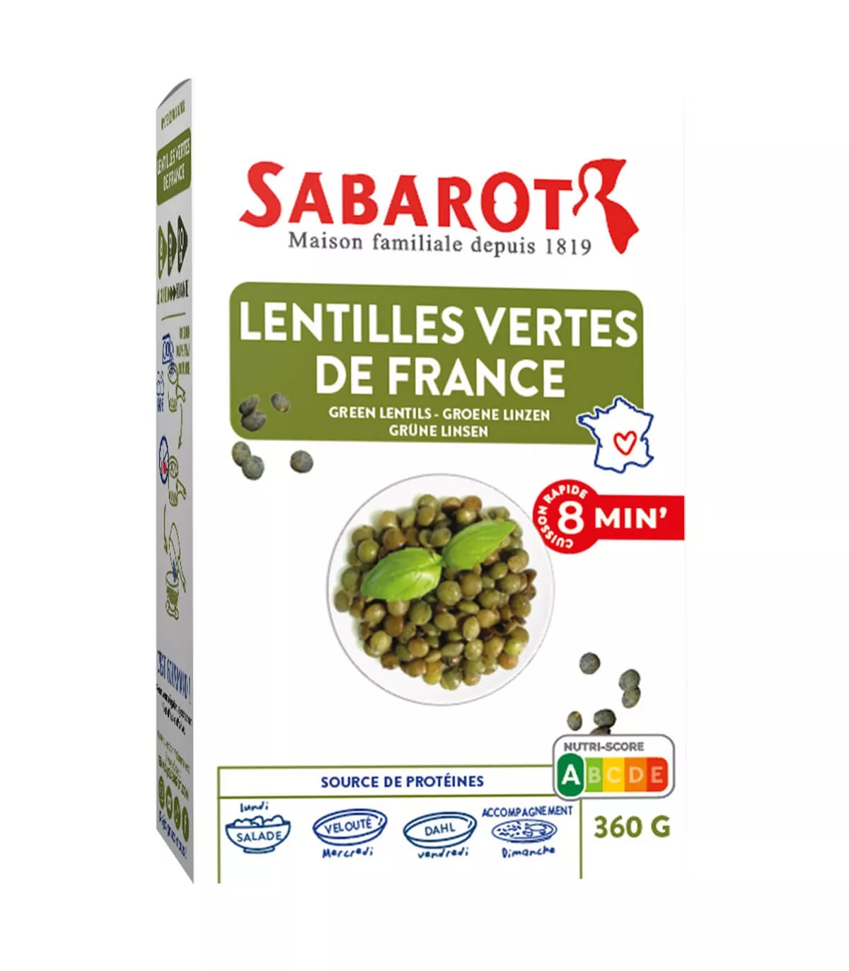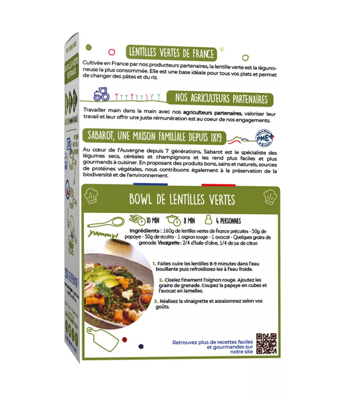 Précuites par un procédé entièrement naturel, les lentilles vertes "Cuisson rapide" Sabarot voient leur temps de cuisson passer de 25 minutes à 8 minutes seulement ! Idéales en salade, en verrines ou en accompagnement, elles conservent toutes leurs qualités gustatives.