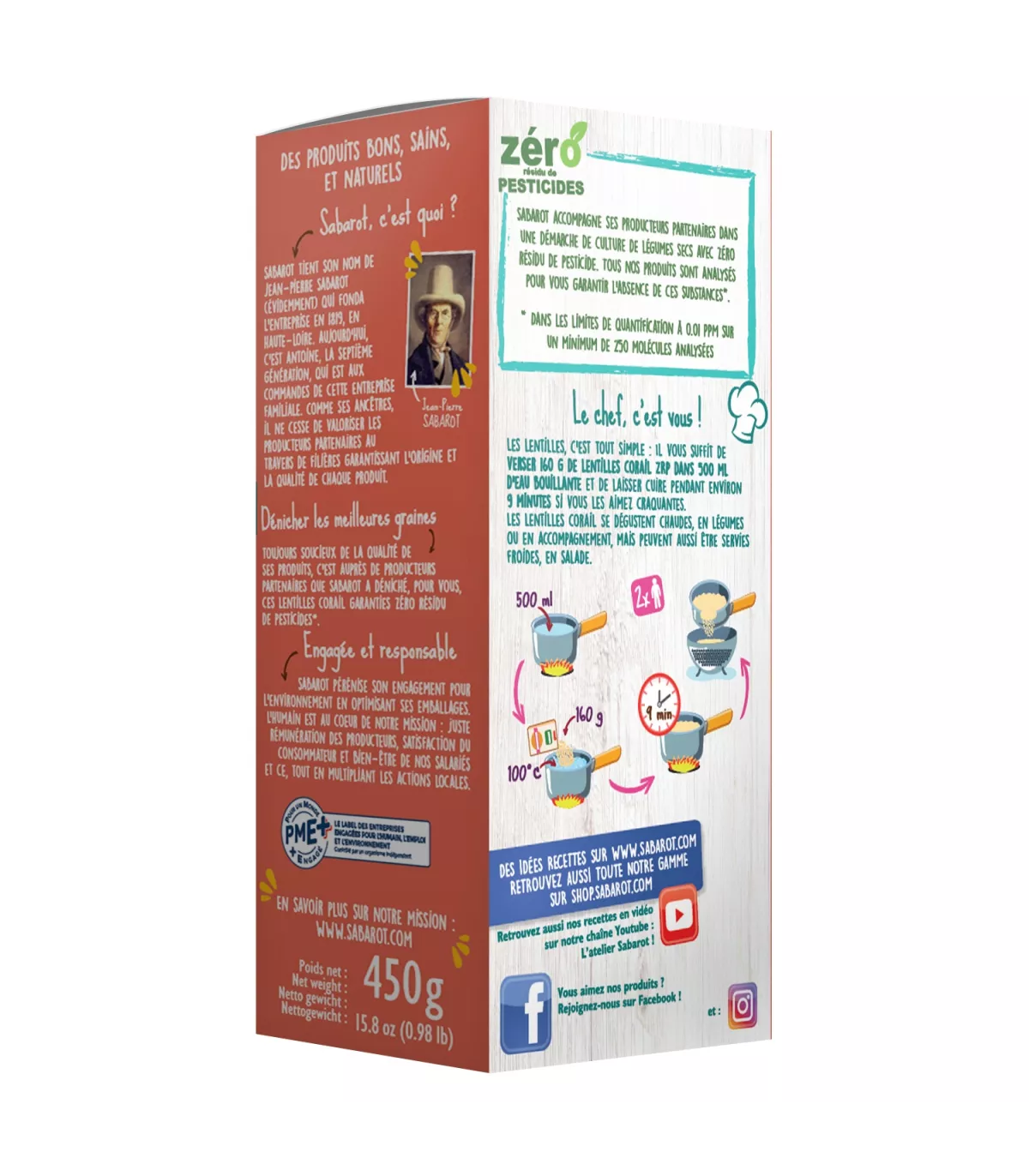 Lentilles corail zéro résidu de pesticides 450g SABAROT