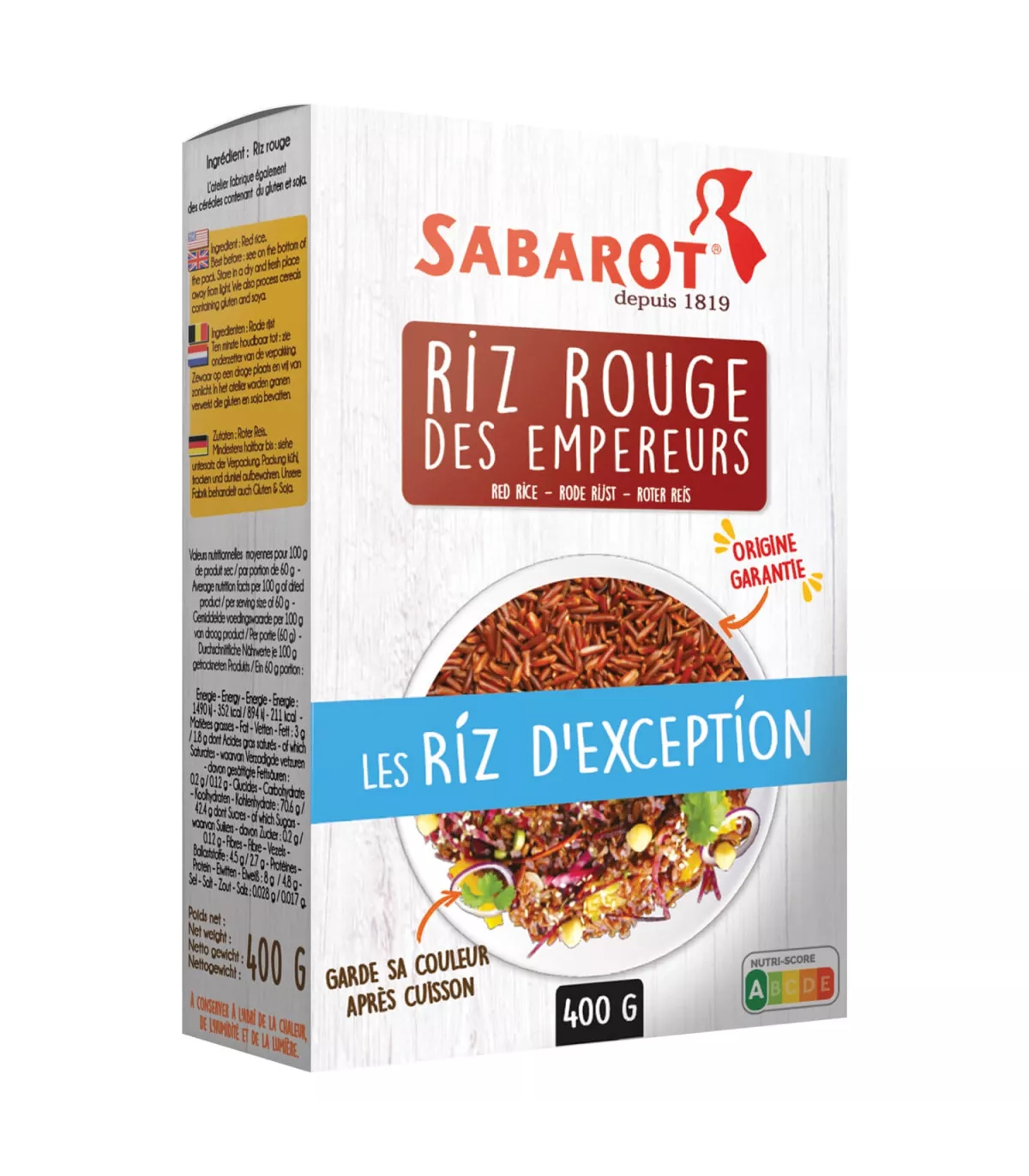 Dans sa gamme "Céréales du monde", Sabarot vous propose en exclusivité le riz rouge des Empereurs. Ce riz originairement réservé à l'Empereur chinois est un riz complet. Il doit sa couleur et ses propriétés nutritives à la peau qui l'entoure. Avec son goût subtil et délicat, il peut-être cuisiné en salade, ou en accompagnement de viandes, poissons ou légumes.