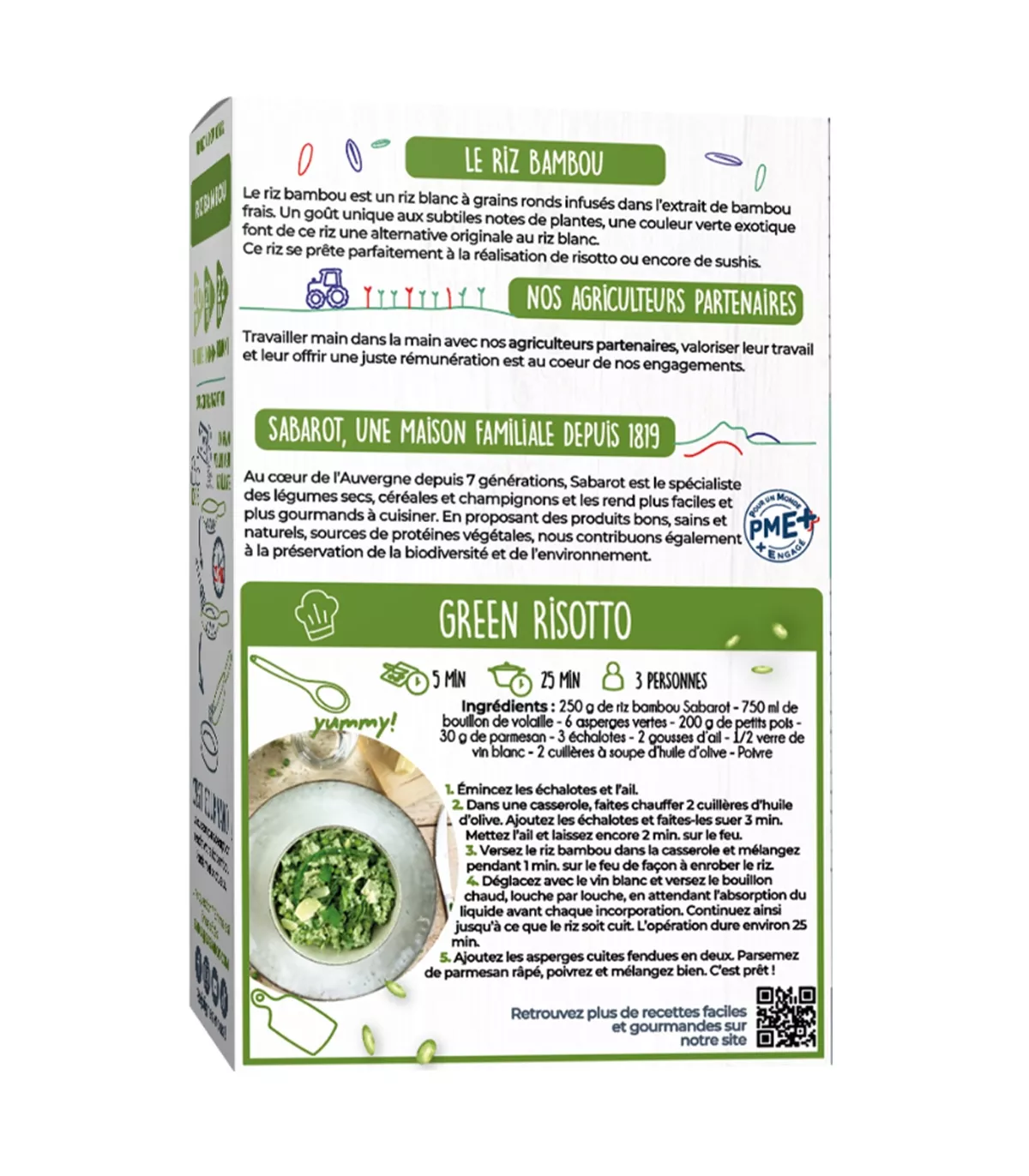 Après cuisson, le riz bambou possède une texture humide et collante. Il est ainsi idéal dans les risottos ou les sushis. Il peut être également utilisé en accompagnement et apportera une touche colorée et singulière à tous vos plats!